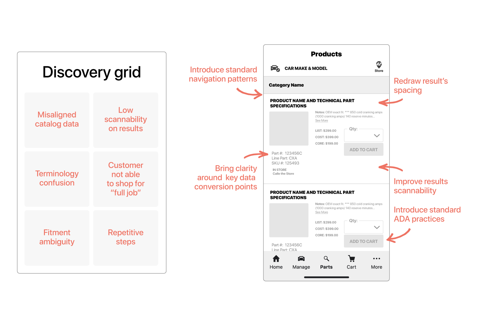 Collaborated with Product, Data, and Engineering teams to map the end-to-end parts search and order flow.